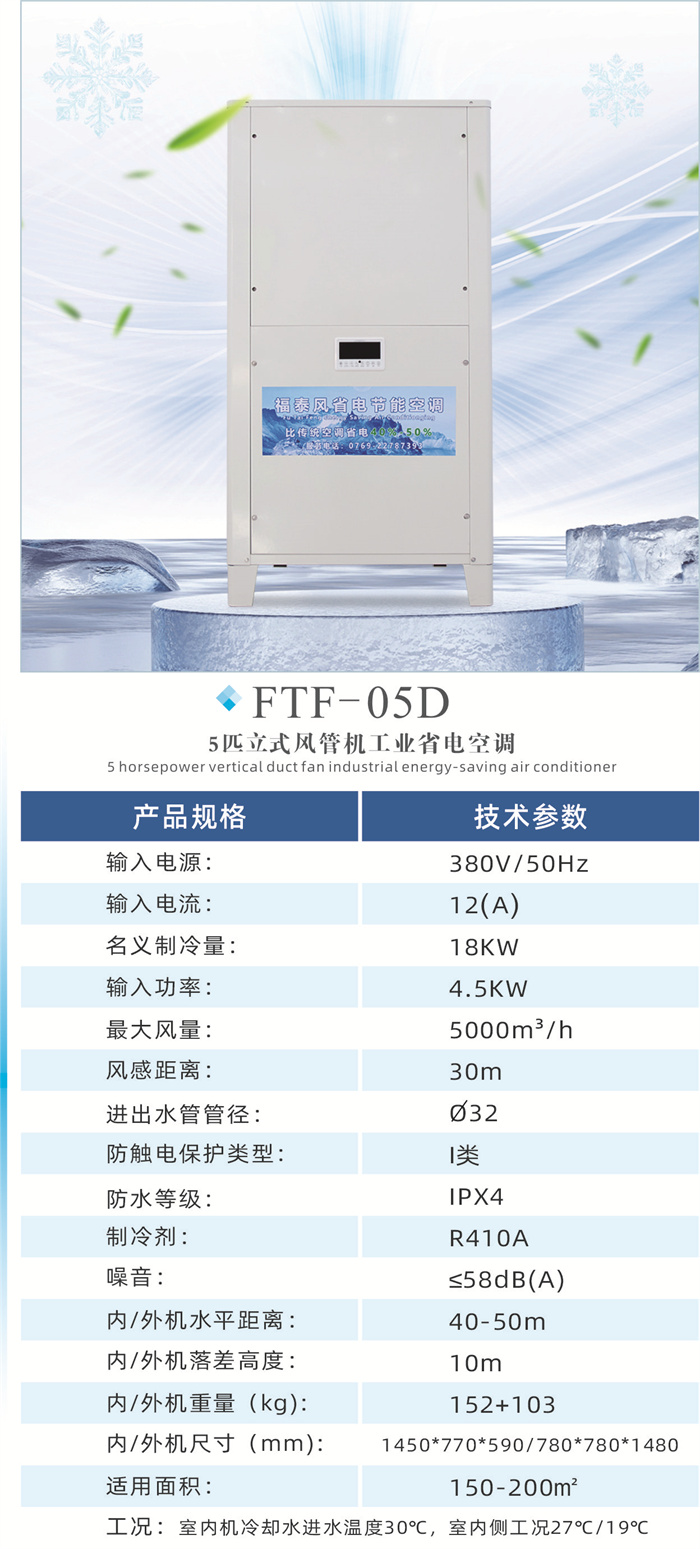 .節能省電、同等面積安裝比傳統空調省電30~50%,覆蓋面積大一臺5P的可以覆蓋200個平方車間降溫,出風口溫度可以做到13-16度。車間溫度可做到20-26度適合人體體感溫度。